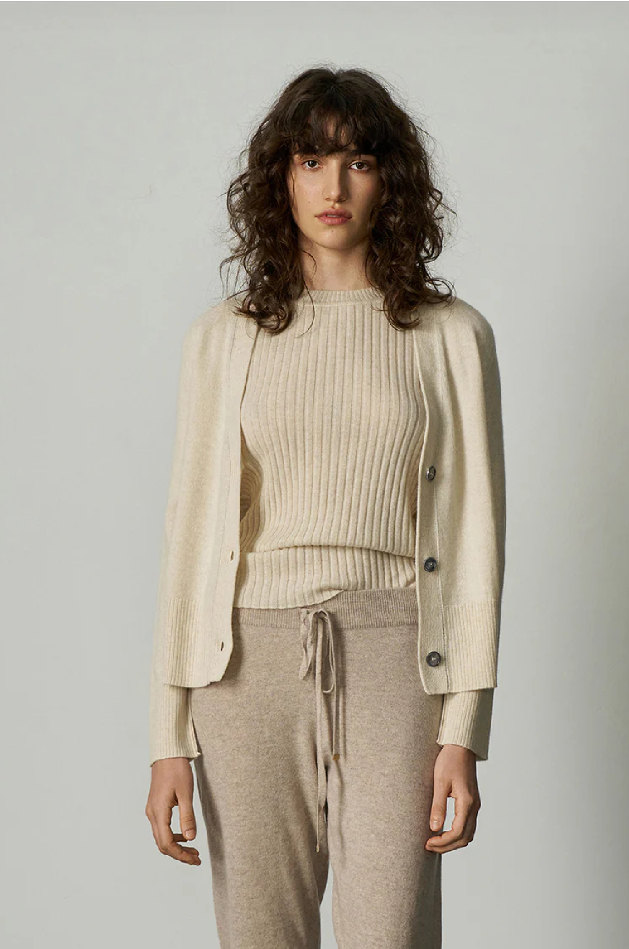 ALEGER - 145 CASHMERE SEAM DETAIL CARDI IN PEARL