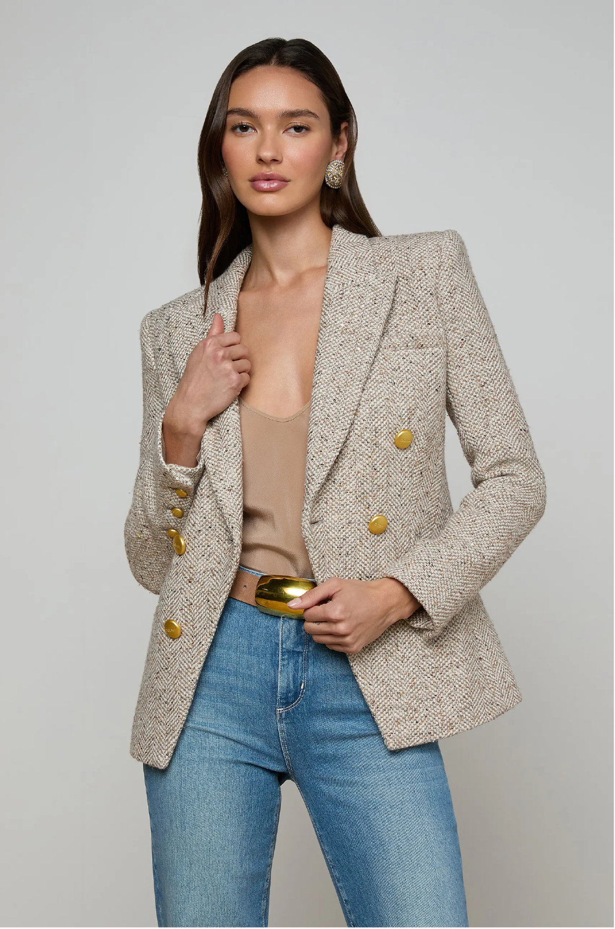 LAGENCE - KYOMI DBL BREASTED BLAZER IN NATURAL TWEED
